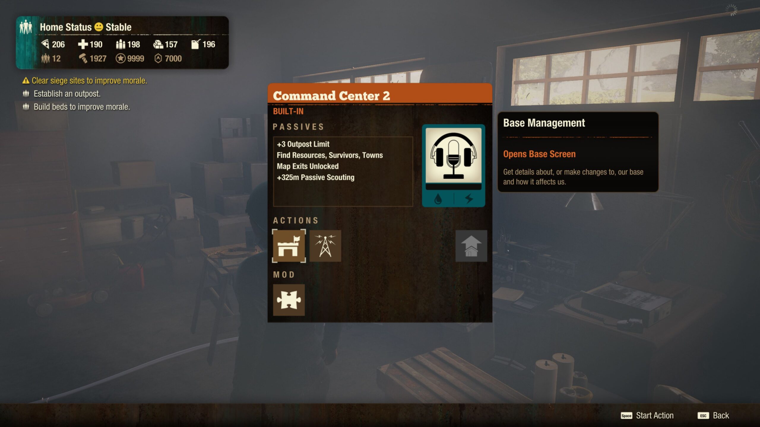 Changing maps brings you to a new town full of buildings to be scavenged and Plague Hearts to be destroyed. You will start at the base of your choice, at which point you’ll have access to all the resources and gear that you had in your previous base (including all the materials and influence you spent on upgrading facilities). This also automatically relocates any parked car that you had in a parking spot at your old base, even if your new base has fewer parking spots!