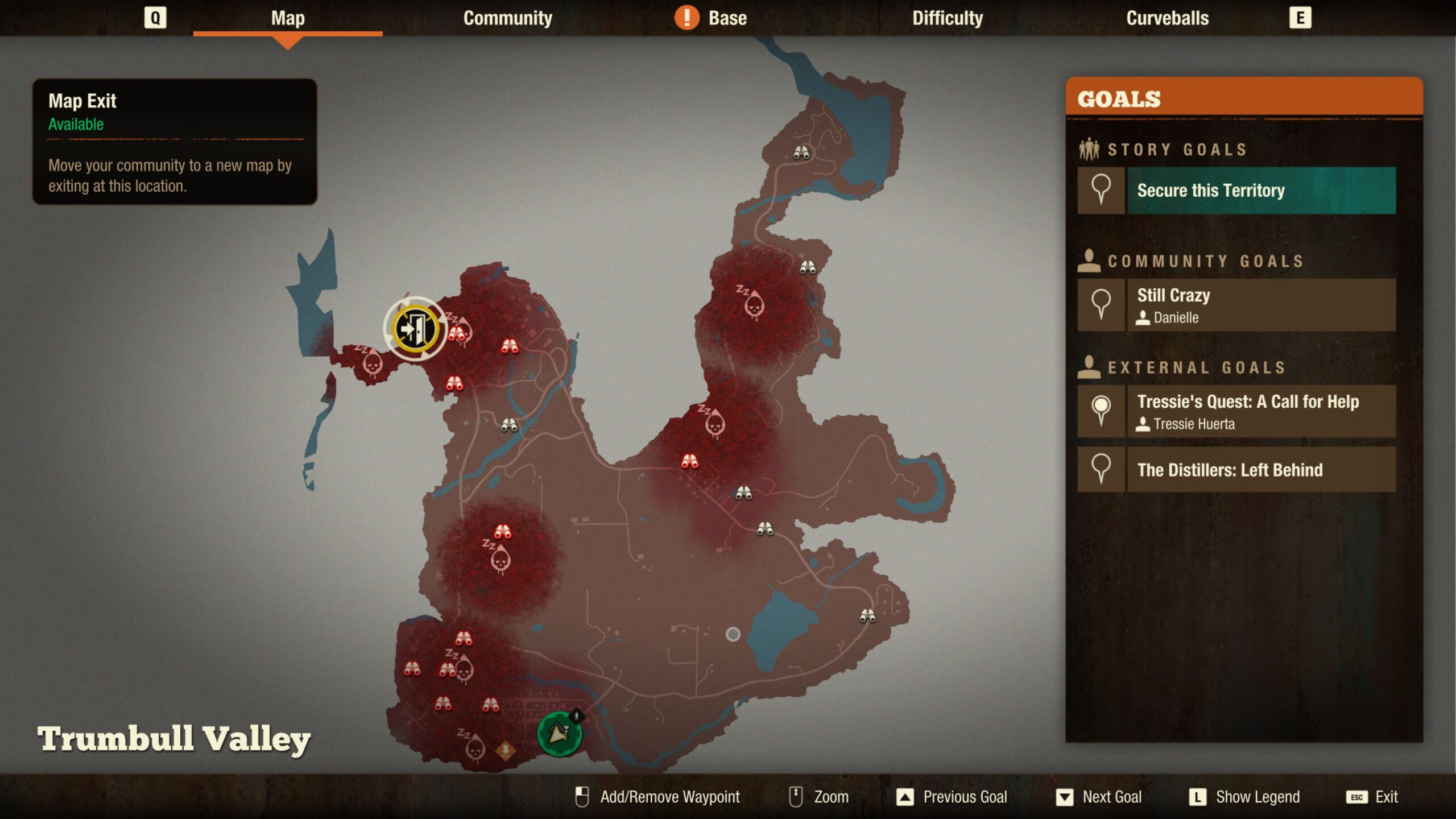 First you’ll need to upgrade your Command Center to tier 2. Then, using the exit point that it marks on your map, use any survivor in your community and drive to the exit point. You’ll be asked to confirm that you want to leave, then prompted to select your new location and base. (You’ll also get the option to change your difficulty, but that’s not required.)